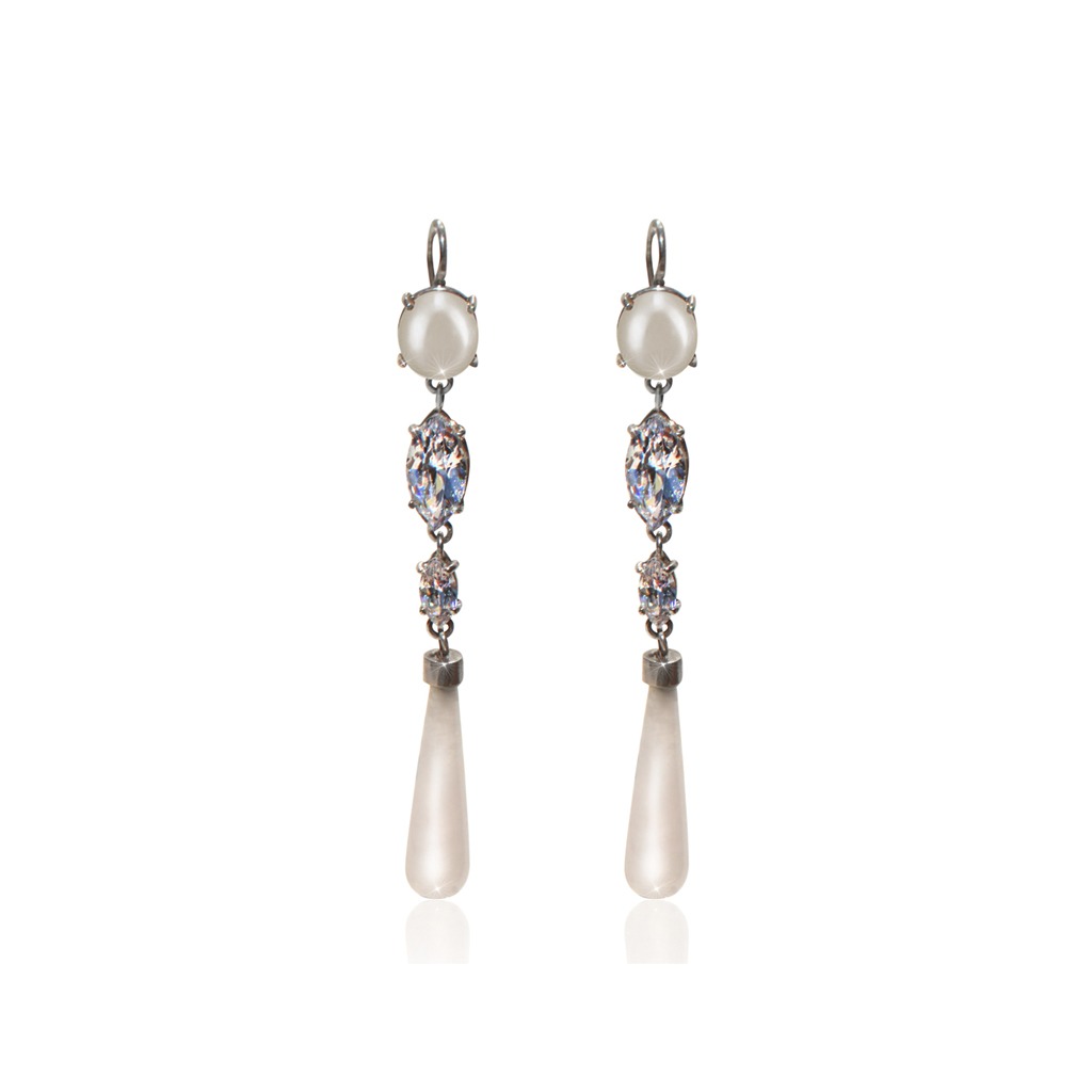 Aros de Plata 925 con gemas de Onix Blanco y cubics engarzados