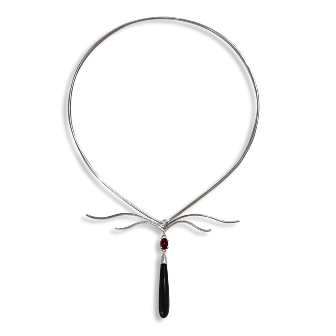 Collar de Plata 925 con gemas Granate y gotas de Onix