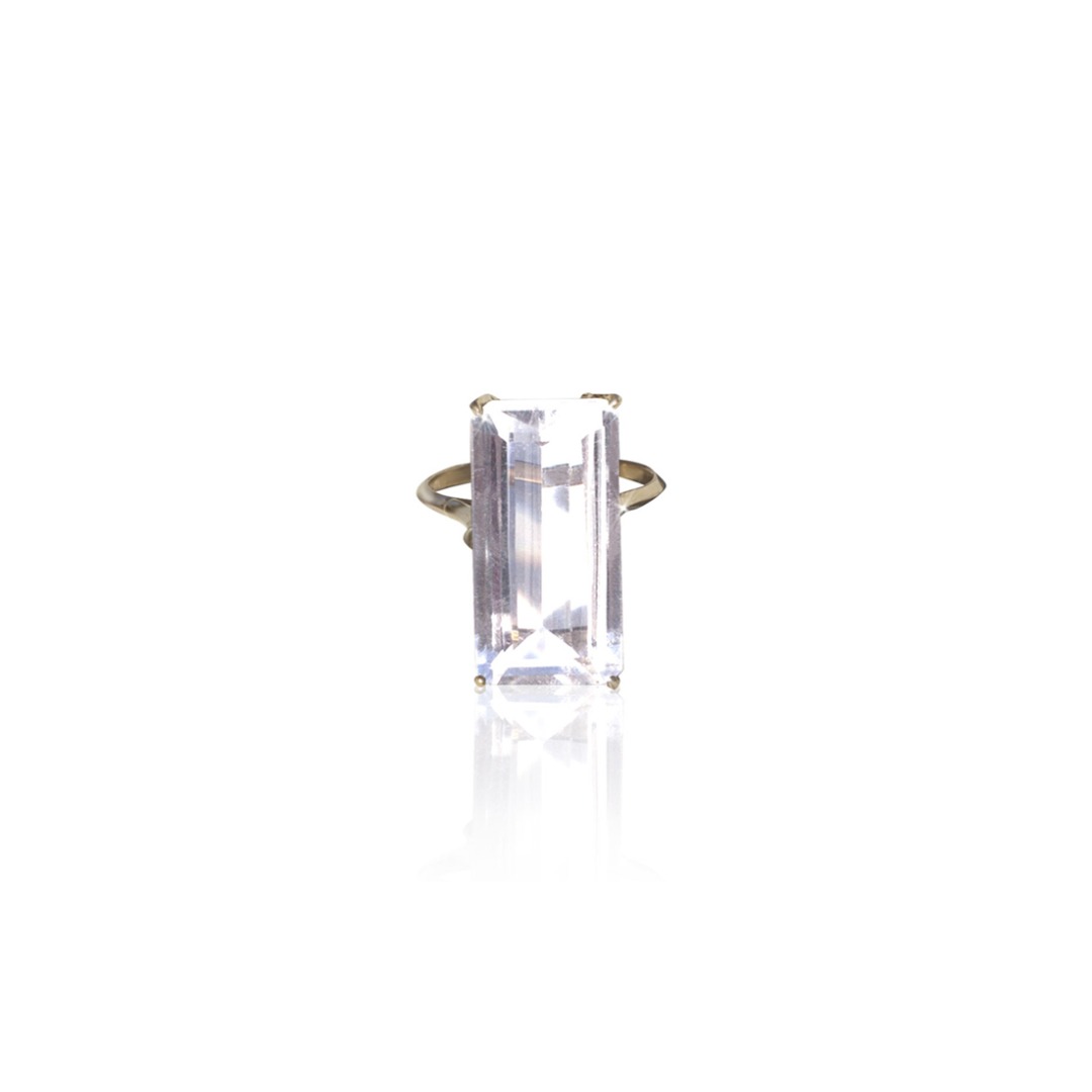 Anillo de Oro Blanco 18 K (Quilates) con gema Cristal de Roca
